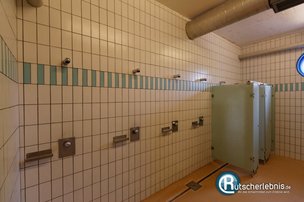 In den Duschen findet der Badegast zahlreiche offene Duschplätze. Kleine Metallablagen bringen Ordnung in das Chaos mit Duschgel und Shampoo. Die Duschen sind nicht nach Geschlechtern getrennt, nackt duschen ist entsprechend nicht möglich.