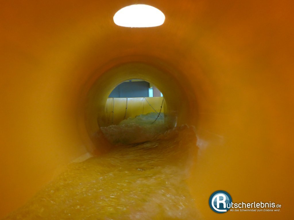 An der Wand der hohen Schwimmhalle führt eine Wendeltreppe nach oben zum Startbereich der roten Röhrenrutsche. Aus 9,60 Metern Höhe geht es nach dem Grünsignal ab in die Rutsche. Daylight-Ringe und -Spots begleiten die spaßige und durchaus schnelle Rutschpartie, am Ende gibt es einen kleinen Black Hole Abschnitt. Nach 94,90 Metern endet die Rutschpartie im Sicherheitsauslauf.