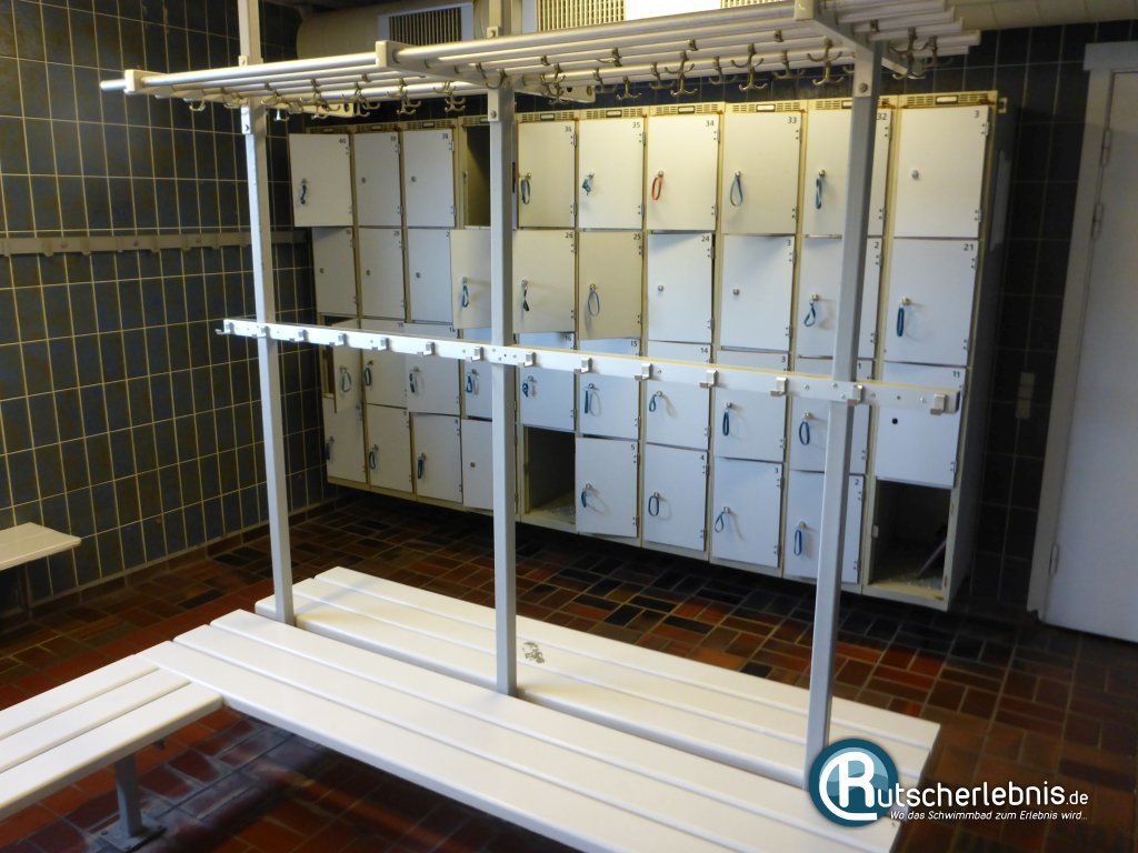 Bei den Umkleiden im Badeland des Jesperhus Feriepark Nykoebing Mors handelt es sich um klassische, nach Geschlechtern getrennte, Sammelumkleiden mit großer Sitzbank in der Mitte des Raumes und ohne Einzelumkleiden.