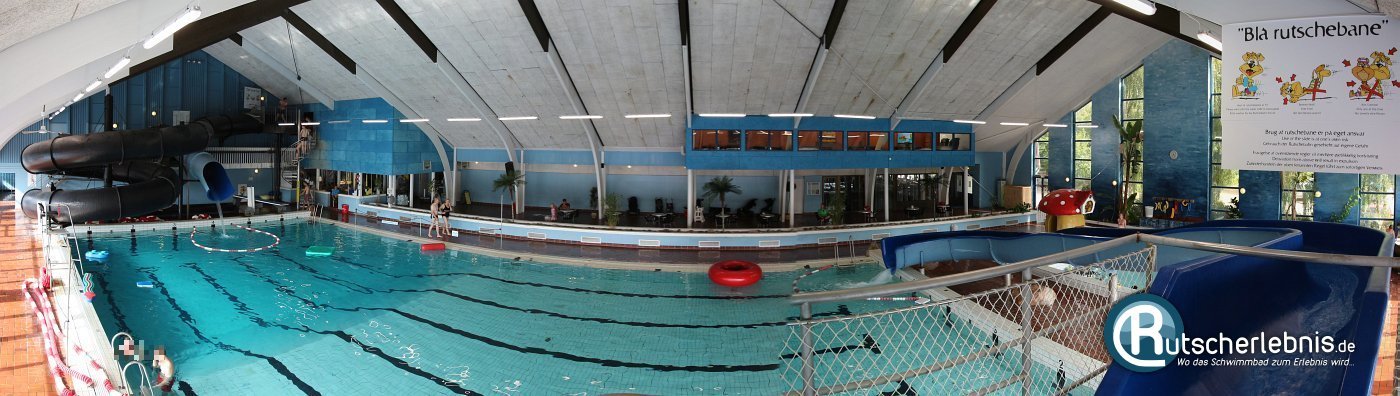 Das Schwimmbad im Jesperhus Feriepark Nykoebing Mors bietet sowohl ein Sommer- als auch ein ganzjährig betriebes Hallenbad. In Letzterem können sich Schwimmer in der mit Spitzdach versehenen Halle im bereits vom Eingangsbereich aus sichtbaren Sportbecken auf sechs Bahnen austoben. Am Rand gibt es ein 1-Meter-Sprungbrett. Gleichzeitig dient das Becken als Spaßbecken und beherbergt sowohl eine Landezone für die Pelikanrutsche als auch für die offene Riesenrutsche.