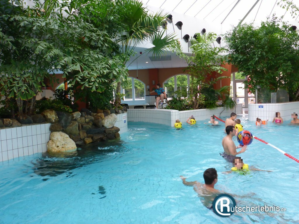Auch hier zieht sich der etwas altmodische Eindruck weiter fort. Die Umkleiden wirken wie in der Zeit stehen geblieben und auch die Duschen sind zwar sauber, aber alles andere als modern. Jetzt aber rein ins Erlebnisbad, welches einen mit einer freundlichen Pflanzenlandschaft in einer hellen Schwimm- und Erlebnisbadhalle begrüßt.