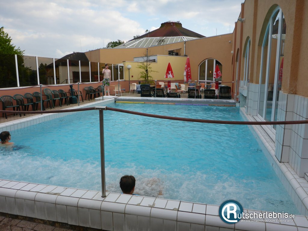 Neben dem Erlebnisbecken hat der Center Parcs Eifel in Gunderath noch ein warmes Außenbecken mit Massageliegen zu bieten. Hier kann man es eine zeitlang aushalten, die Wassertemperatur dürfte aber gerne noch zwei Grad wärmer sein. Rings um das Becken gibt es, insbesondere für den Sommer, jede Menge Sitz- und Liegemöglichkeiten, wenngleich das Ambiente mit der tristen Hauswand und den transparenten, an Lärmschutzwände erinnernde Abtrennungen schwer zu wünschen übrig lässt.