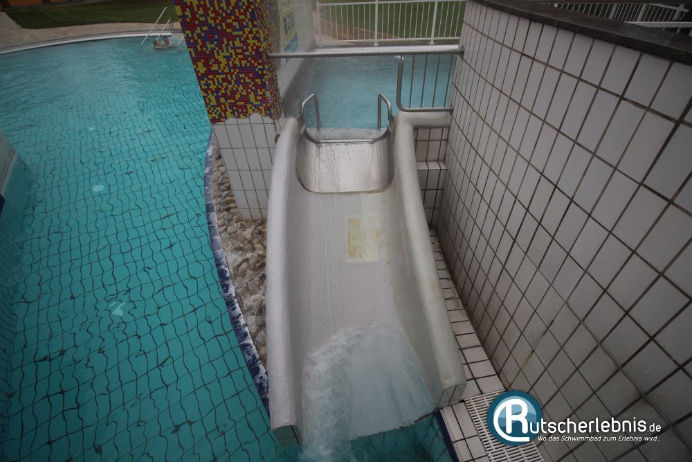 Die grüne Kinderrutsche besteht im Prinzip nur aus einer 180°-Kurve und endet dann in einem langen Flachwasser-Auslauf. Dank der Starthöhe von knapp zwei Metern ist die Rutsche dennoch flott und bereitet vor allem den kleinen Badegästen Spaß.