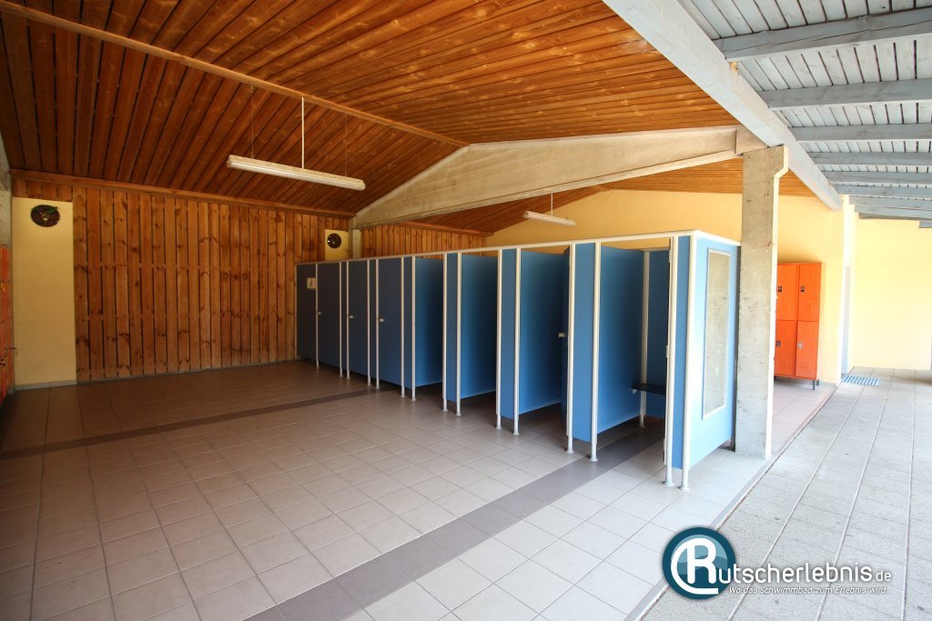 Die Duschen im Freibad an der Schleifmühle sind recht geräumig. Es gibt einige offene Duschplätze, außerdem stehen Duschkabinen für die etwas intimere Körperpflege vor und nach dem Badbesuch zur Verfügung.