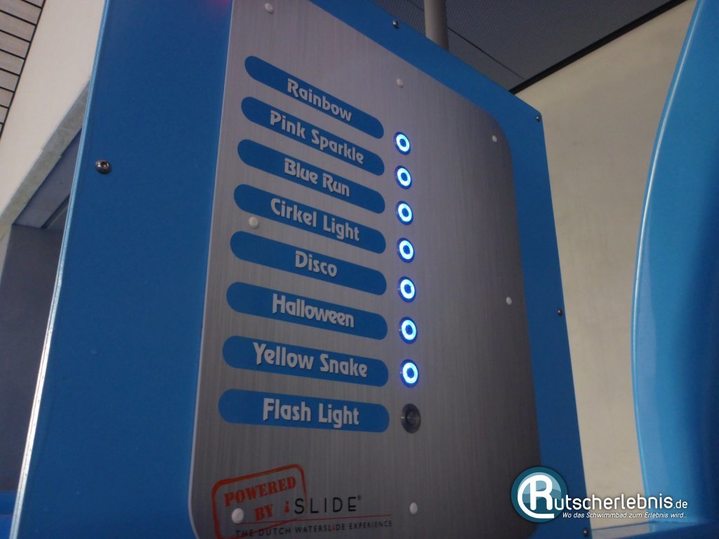 Die Reifenrutsche „Intenso“ ist mit 164,50 Metern Länge die längste Wasserrutsche der Niederlande. Am Start steht auf einem großen Terminal eines von acht unterschiedlichen Rutschprogrammen zur Auswahl. Je nach gewähltem Programm leuchten die LED-Spots mal sanft und mal hektisch, außerdem wechseln die Farben passend zum Thema.