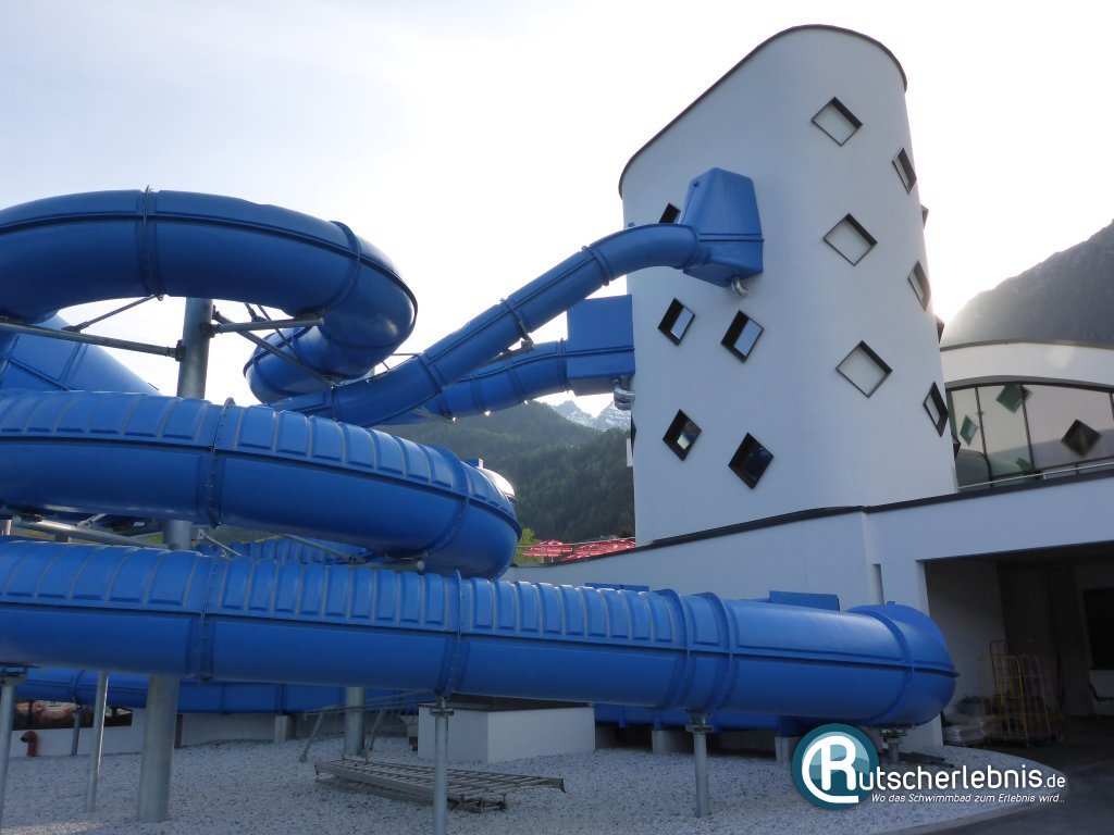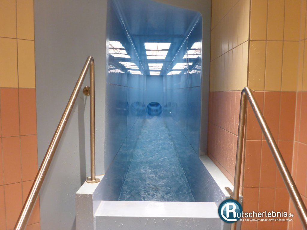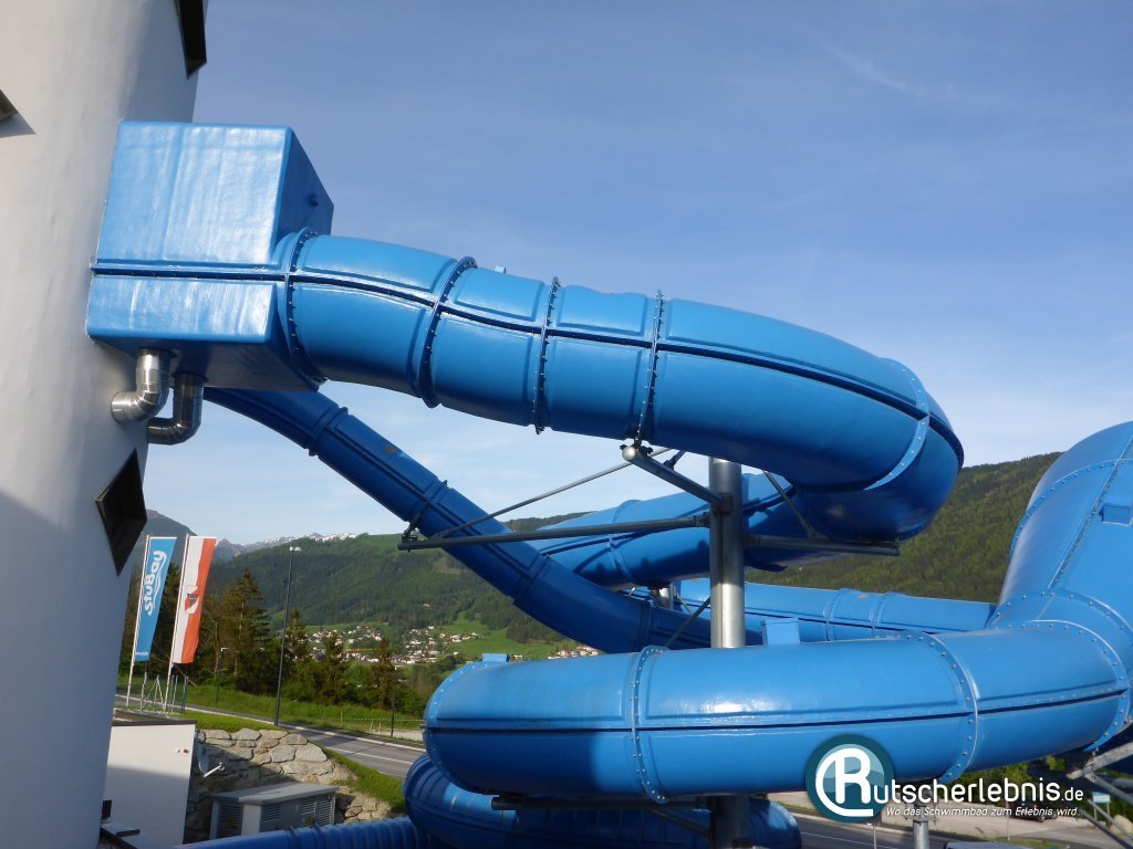 Ganzjährigen Rutschenspaß erwartet den Badegast im separaten Rutschenturm, welcher vor allem von außen durch seine ungewöhnliche Architektur und die schräg eingebauten Fenster auf sich aufmerksam macht. Von ganz oben startet die komplett blaue Turborutsche. Die Starthöhe beträgt 9,30 Meter, die Rutsche selbst ist für eine Turborutsche mit 65,80 Meter ungewöhnlich lang. Der Start ist flott und man beschleunigt auf einer langen Gerade immer weiter. Durch eine relativ langgezogene Rechtskurve geht es dann in den Rutschenauslauf. Spaßig ist die Rutsche auf jeden Fall, aufgrund des relativ geringen Gefälles gehört sie aber definitiv zu den langsameren Turborutschen.