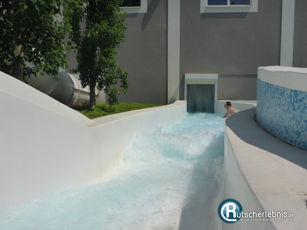 Von dort geht es in rasantem Tempo weiter, bis man schließlich durch einen Durchgang in den Innenbereich gespült wird. Dort kann man dann das Becken über eine Treppe verlassen. Der Wildbach ist extrem spaßig und vor allem sehr wild.