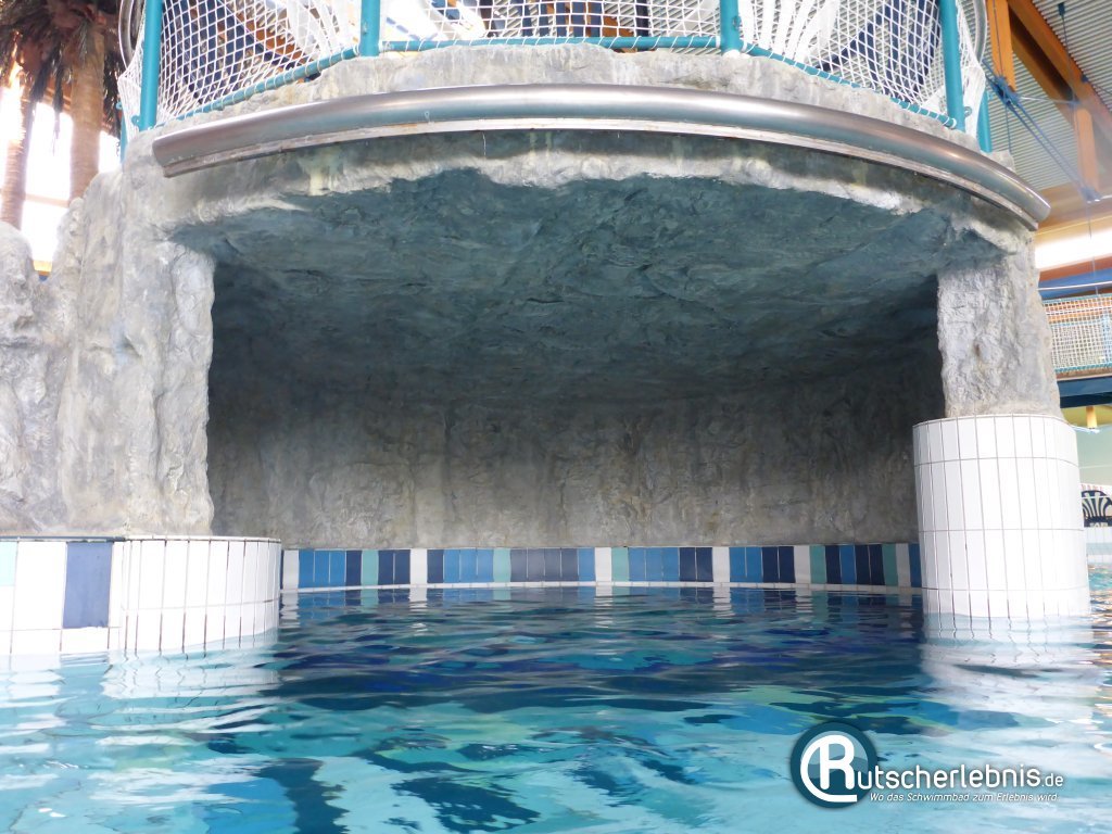 Interessant gemacht ist dann auch das Kaskaden-Becken. Während es die meiste Zeit ruhig ist und das Becken eher an einen großen Whirlpool erinnert, wird zeitgesteuert ein Wasserfall in Gang gesetzt, welcher von oben kreisförmig auf einen herabstürzt. Ideal um mal die Nackenmuskulatur so richtig durchmassieren zu lassen.