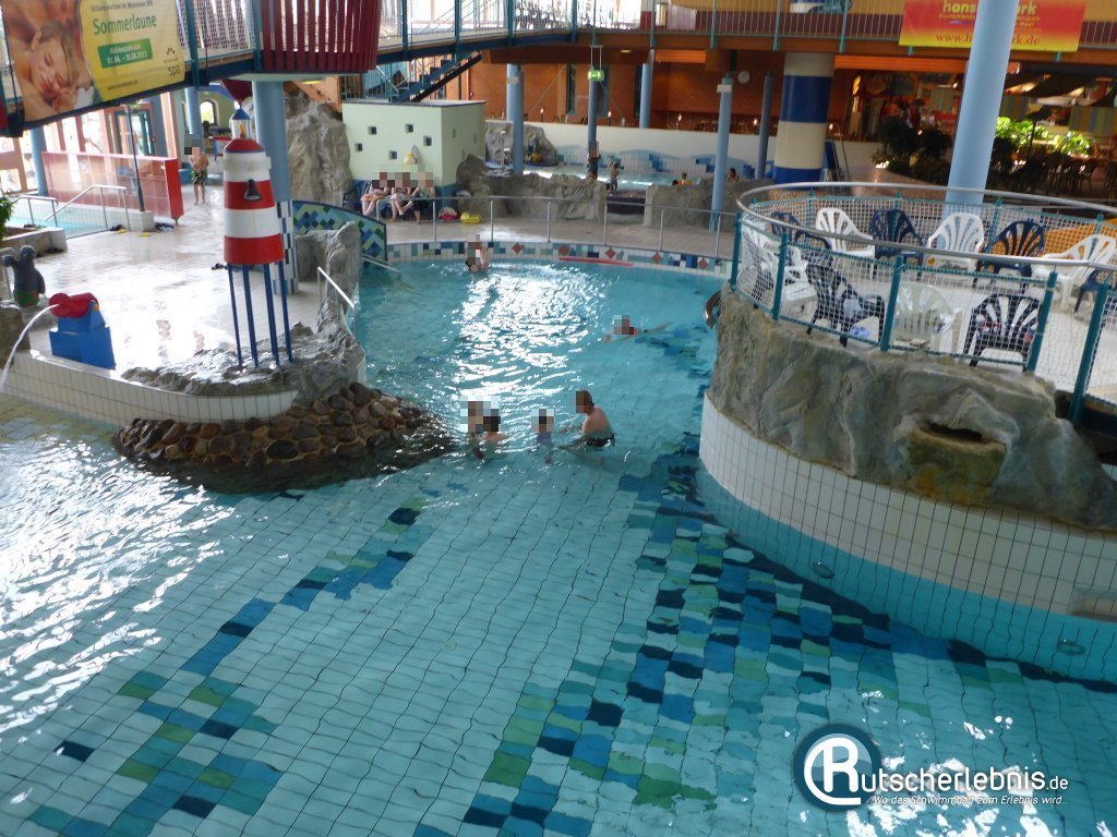 Das Erlebnisbecken ist das Herzstück des Wonnemar Wismar und bietet einige Attraktionen. Es handelt sich dabei um ein Wellenbecken, wo periodisch eher sanfte Wellen die Badegäste durchschaukeln. An der Seite des Beckens ist eine Familien-Breitrutsche in knalligem gelb angebracht, welche von einer Art Felsen direkt ins Erlebnisbecken führt. Als weitere Attraktion gibt es eine Grotte. Diese ist etwas Abseits in der Landebucht der Breitrutsche ins Wellenbecken integriert. Die Wassertemperatur ist auf jeden Fall sehr angenehm und man kann es eine ganze Weile in dem belebten Becken aushalten, Spaß auf der Breitrutsche für Groß und Klein ist auf jeden Fall garantiert.